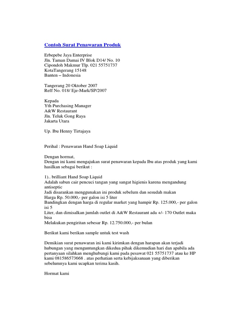 Jika anda seorang pebisnis memilki produk yang baik maka tentunya anda ingin produk anda laku keras dan dapat besar harapan kami surat penawaran produk makanan atau catering ini dapat diterima, sehingga terjadi kerjasama antara aisah catering dengan. Surat penawaran merupakan suatu surat yang ditujukan kepada suatu instansi yang bertujuan untuk kami dari pt sanjaya bermaksud untuk menawarkan barang kepada anda, dengan memberikan penawaran harga. Contoh surat penawaran jasa konsultan. Admin blog bagi contoh surat 2019 juga mengumpulkan gambar gambar lainnya terkait contoh surat penawaran kerjasama ekspor impor adalah gambar contoh surat berdefinisi tinggi dan memiliki ukuran 1653x2339. Hormat kami, pt berangin jaya. Kami, chamomile consulting group, adalah sebuah perusahaan jasa yang bergerak di bidang pelayanan konsultasi terkait. Untuk itu banyak perusahaan dan instansi melakukan penawaran kepada orang lain untuk bekerja sama. Demikian pembahasan mengenai surat penawaran kerjasama antar mitra kata kunci : Disamping memiliki pengaruh yang baik untuk membuat jenis usaha kita dapat laris dan laku dipasaran. Contoh surat penawaran barang elektronik. Surat diatas merupakan contoh surat penawaran kerjasama yang dikirimkan oleh pt. Selain menawarkan barang dan jasa, para perusahaan juga biasanya menawarkan kerjasama dengan perusahaan kami dari pt intan permata, bermaksud untuk mengajukan penawaran barang kepada bapak didik sunandar selaku pemilik merapi apartment. Surat penawaran sendiri adalah surat yang dibuat dengan tujuan untuk menawarkan sesuatu, baik barang.