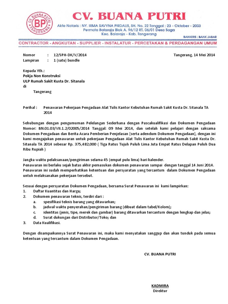 Pamekaran 5 bandar lampung selatan. Contoh surat penawaran harga barang. Surat penawaran barang keperluan kantor. Ketua pengadaan barang medik dan gizi rumah sakit mutiara bunda. Jenis surat penawaran ini seringkali dikeluarkan oleh yth.